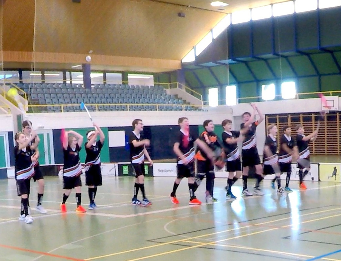 Wir traten mit anderer Aufstellung als gegen die Flames an mit zwei Linien, um den Druck gleich von Anfang an hoch zu halten. Und was soll ich sagen, das gelang perfekt. Eine wunderschöne Direktkombination eröffnete den Score für uns, Yannick traf nach Pass von Philipp, welcher aus der Ferne gleich zum 2:0 erhöhte. Und es ging grad so weiter. Justin zum 3:0, dann Til der den Ball fast mitsamt gegnerischem Schläger ins Tor beförderte. Yves und zweimal Lois legten noch drauf - 7:0 zur Pause, die Zuschauer rieben sich die Augen, der Gegner war förmlich überrollt worden.