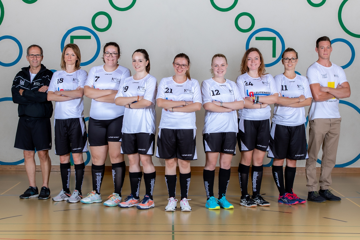 V.l.n.r. Bruno Fierz, Trainer, Tanja Herrmann #18, Alina Bucher #7, Nadine Wildhaber #19, Liv Welter #21, Jennifer Bettschart #12, Riccarda Kistler #24, Joëlle Fierz #11, Dimitri Riedle Assistenztrainer;