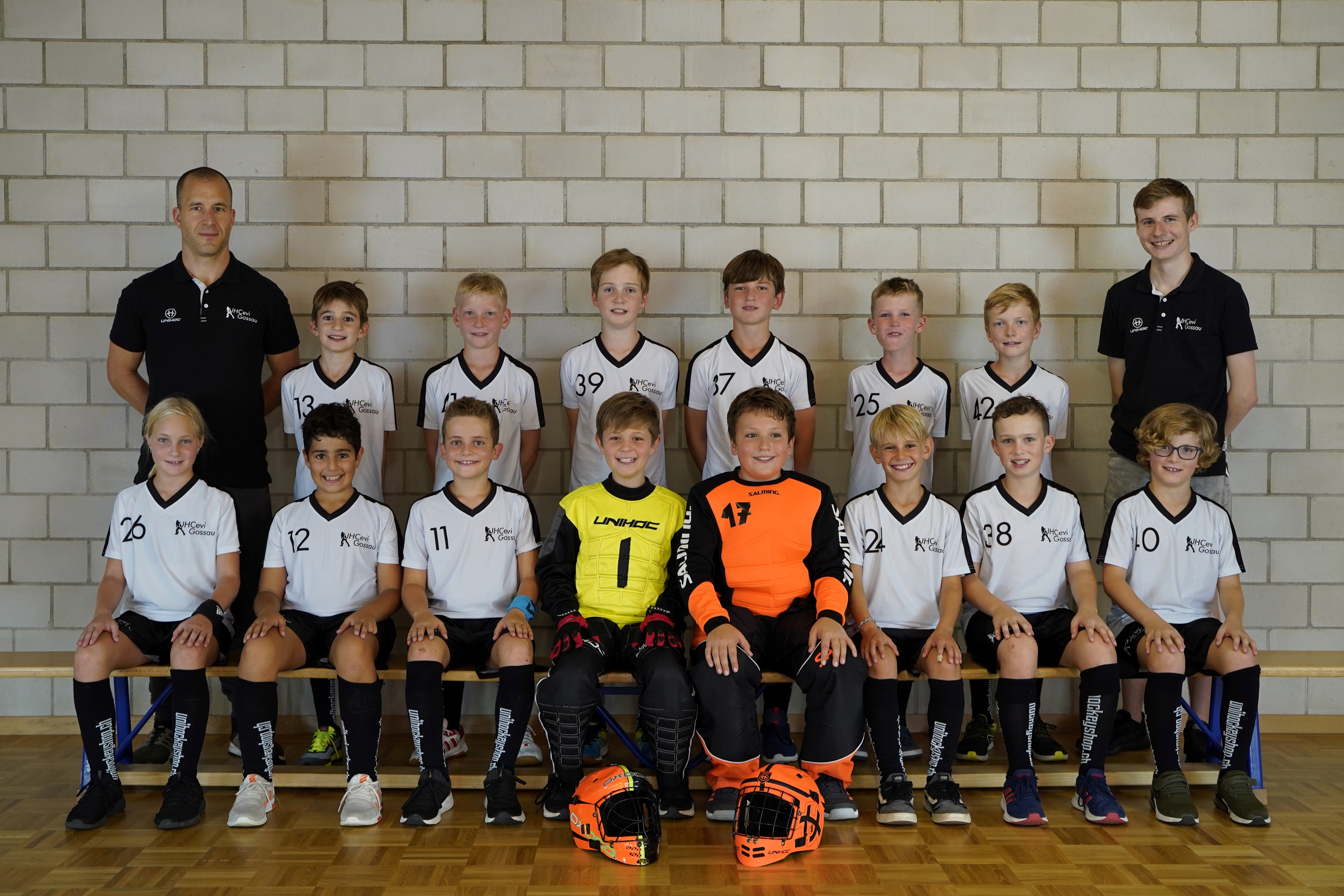 Leonie Fischer #26, Mirco Bilotta #12, Aaron Sharma #11, Micha Berger #1 (Torhüter), Cyrill Mettler #17 (Torhüter), Vitus Bühlmann #24, Maurin Bieler #38, Lian Heusser #40.