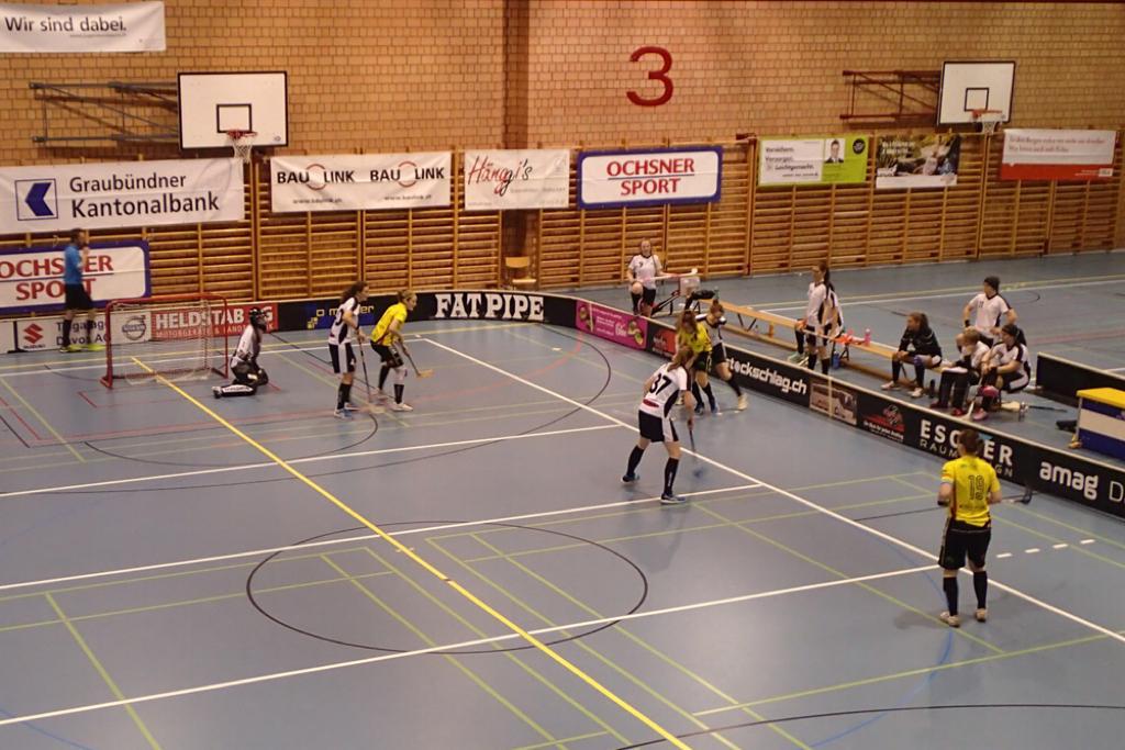 Obwohl das erste Spiel erst um 10:50 Uhr startete schienen die Gossauerinnen noch nicht richtig wach zu sein, denn bereits in der zweiten Minute konnten die Bündnerinnen mit 0:1 in Führung gehen. Dieses frühe Tor weckte dann auch die letzten Spielerinnen auf Gossauer Seite und Brecher konnte durch Zuspiel von Eglauf in der vierten Minute ausgleichen. In Minute sieben konnten die piranhas durch einen Konter wieder zubeissen. Und erneut war es Brecher, Assistiert von Stettbacher, welche in der 13. Minute den Ausgleich erzielen konnte. Ein Gossauer Freistoss in der 18. Minute brachte unsere Damen zum ersten Mal in Führung. Eglauf konnte den Abpraller verwerten. Durch eine erneute 1:0 Situation gegen Seitz in der 19. Minute konnten die Churerinnen vor der Pause auf 3:3 ausgleichen.